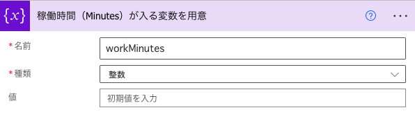 全て、「+新しいステップ」から「変数」を選択し、「変数を初期化する」で作成します。