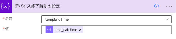 デバイス終了時刻を数値変換した値を入れるための変数を用意します。
