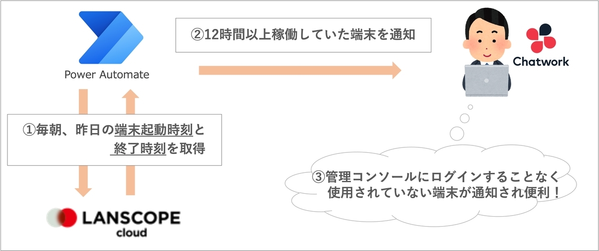 そこで、API と PowerAutomate を連携して、LANSCOPE の情報を通知する仕組みを作ってみました。